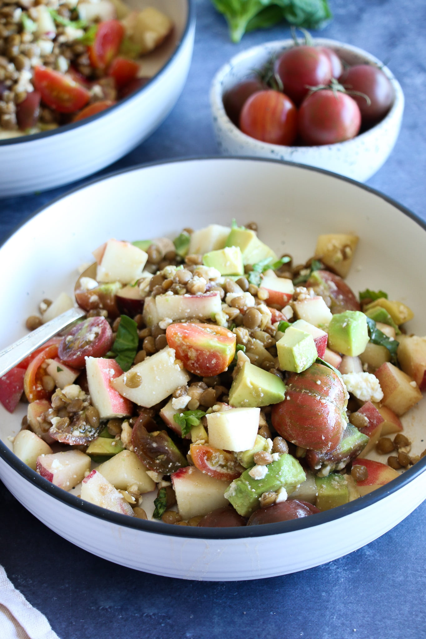 Made with a combination of sweet peaches, salty feta, and aromatic basil, this cold lentil salad comes together in minutes and is packed full of delicious flavors.