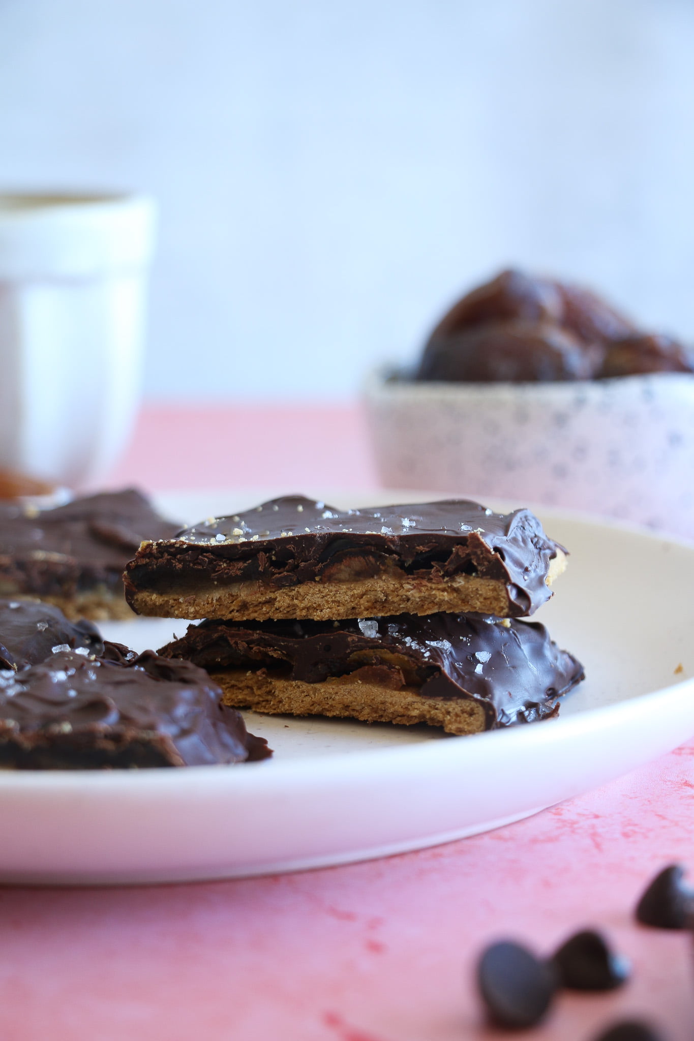 3-Ingredient Date Bark with Dark Chocolate and Graham Crackers