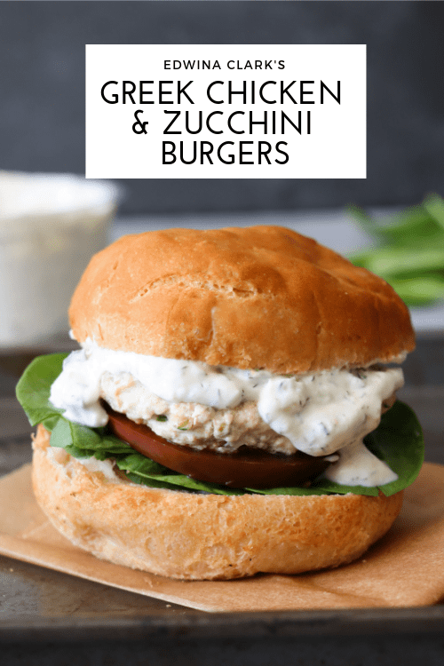Greek chicken burgers stuffed with feta, zucchini, lemon, rosemary, and oregano, and topped with tzatziki. @edwinalclark.