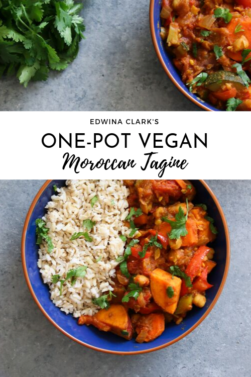 Vegan Moroccan tagine made with 6 veggies, dried apricots, and chickpeas. GF, DF. @edwinaclark.