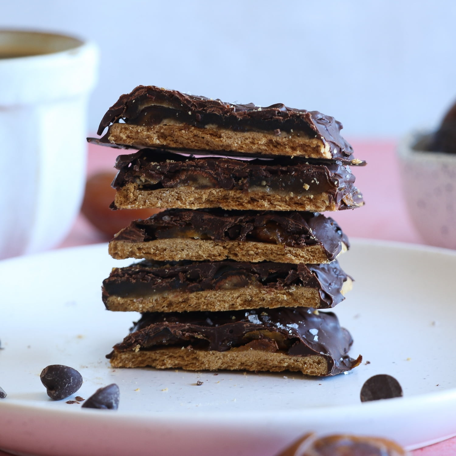 3-Ingredient Date Bark with Dark Chocolate and Graham Crackers