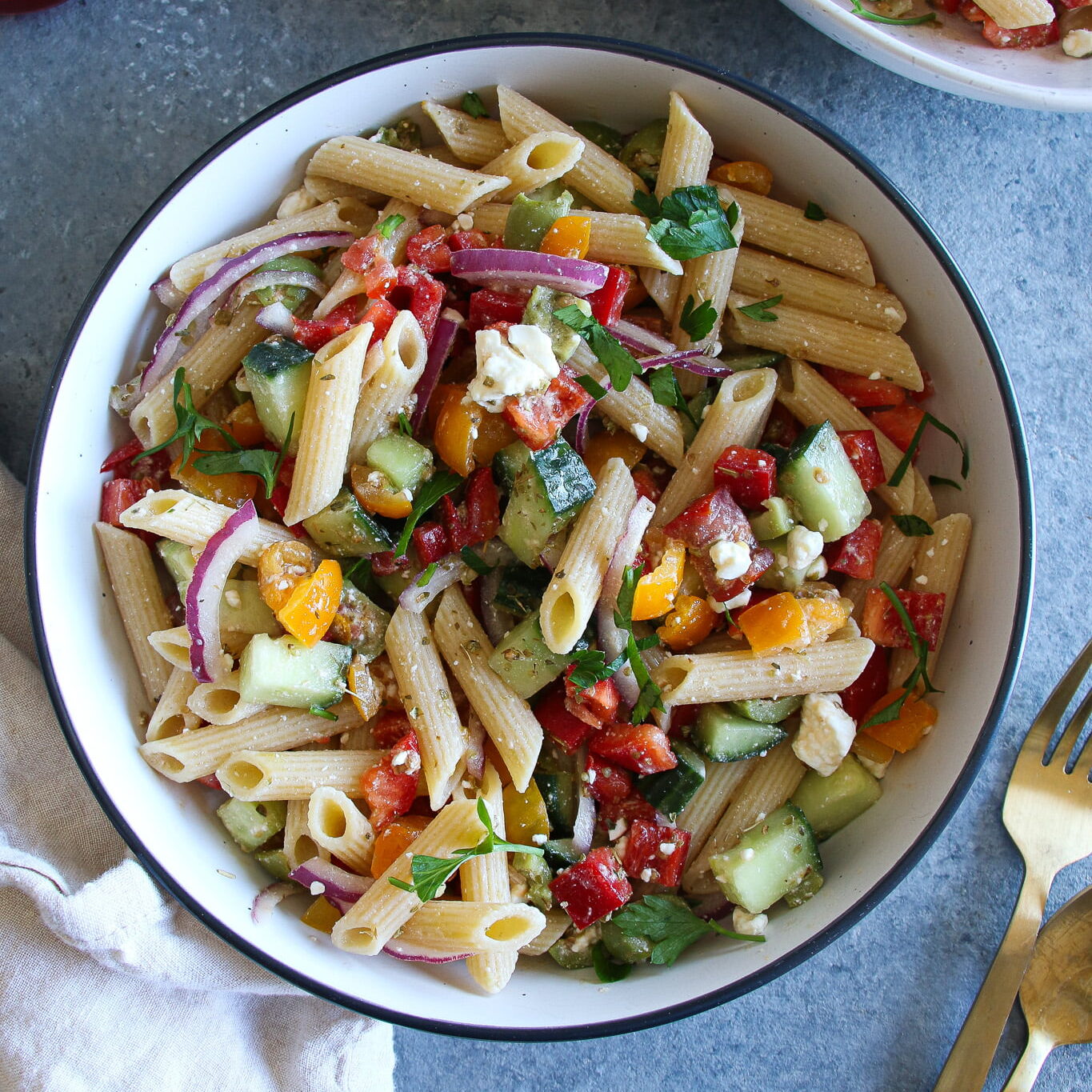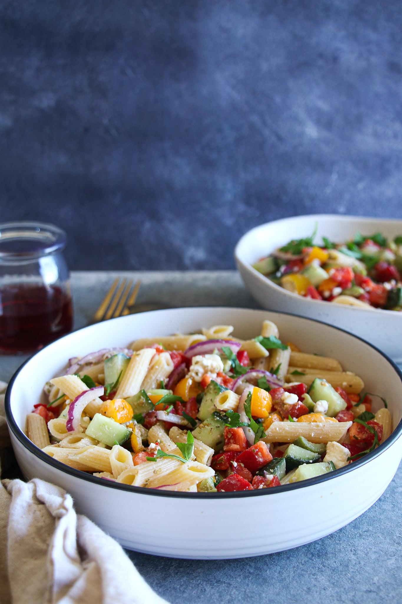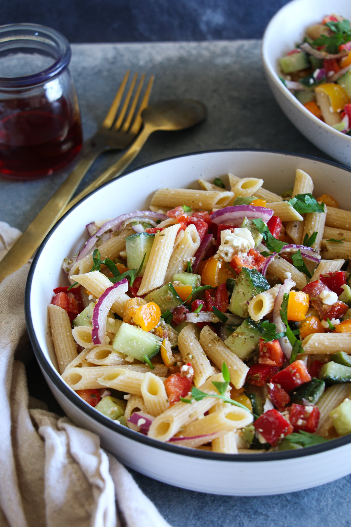 This Greek-inspired Mediterranean pasta salad is brimming with veggies and is equal parts healthy, satisfying, and delicious. If you adore Greek salad like me you’re going to love this recipe!
