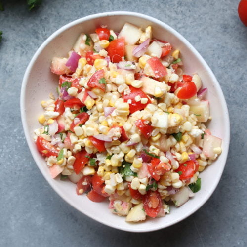 This vegetarian corn salad takes less than 15 minutes to prepare and is a delicious addition to barbecues, picnics, and gatherings. Turn any meal into a fiesta with this fresh summer side!
