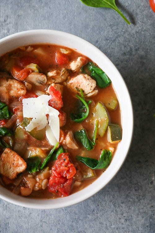This hearty, healthy soup is ready in 30 minutes and offers a bouquet of rich and delicious Italian ingredients. With 5 different veggies, steeped in a tomato-based broth, this dish is bursting with color, flavor, and nutrition. Stay warm over winter with this nourishing, gluten-free, dairy-free recipe!